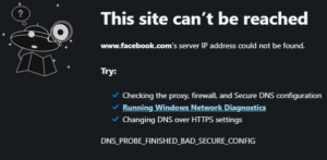 What to do when you encounter err_connection_refused, unable to connect and dns_probe_finished_bad_secure_config maybe after using a VPN or Proxy application.